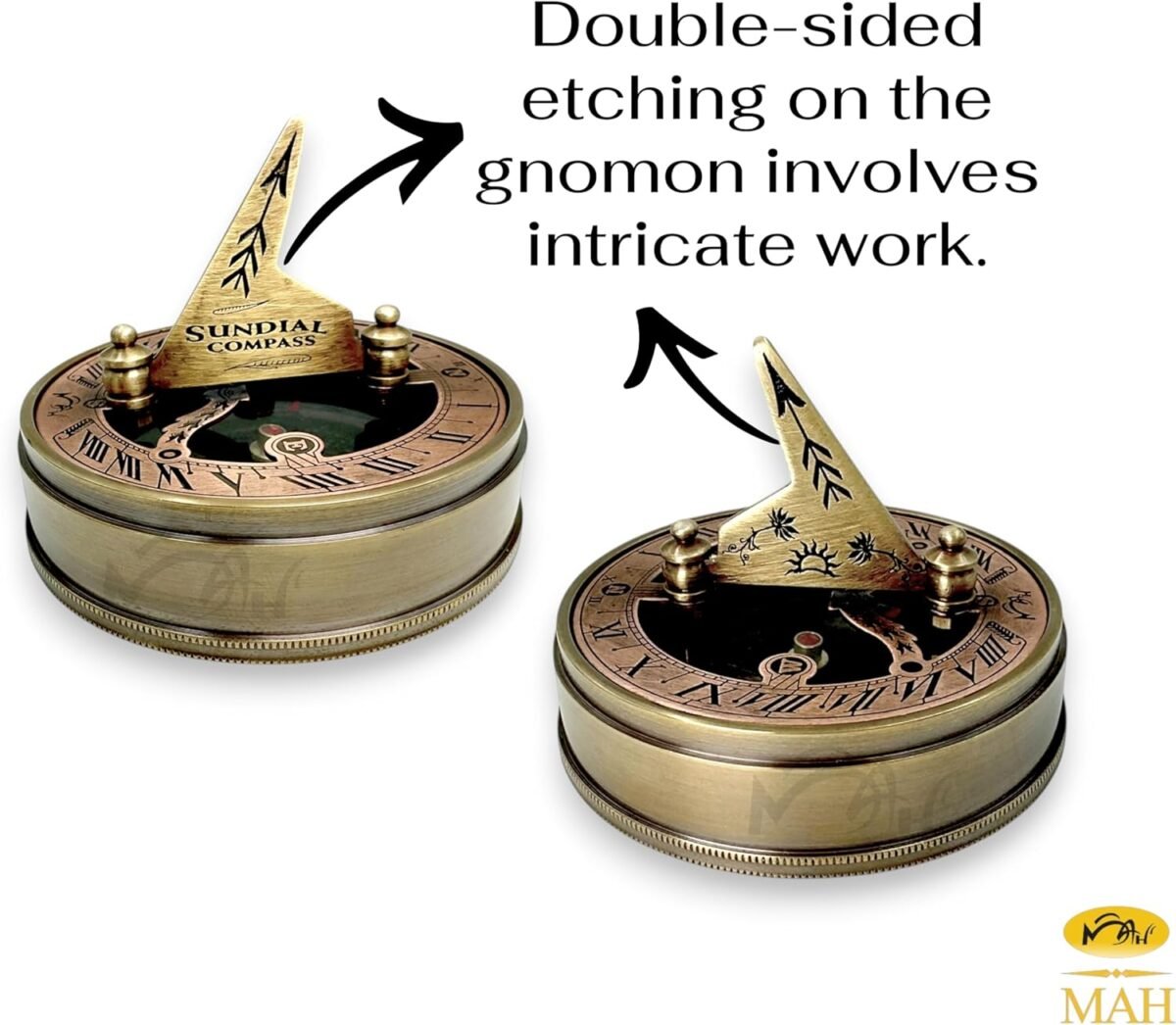 | Special Feature | Adjustable Magnetic Brass Sundial Compass, Home Office Decor, Nautical Navigation, Giftable |