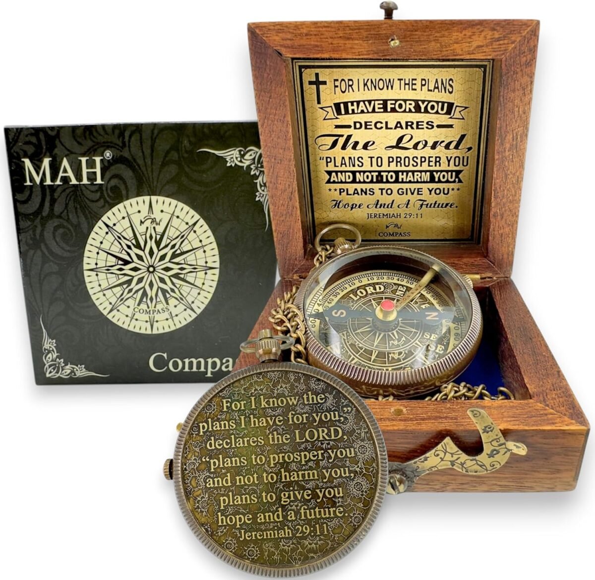 For I Know the Plans – Jeremiah 29:11 Brass Compass with Embossed Dial & “LORD” as North, Christian Gift for Graduation, Baptism, Confirmation, Pocket Keepsake for Boys, Girls, Adults, Religious gifts
