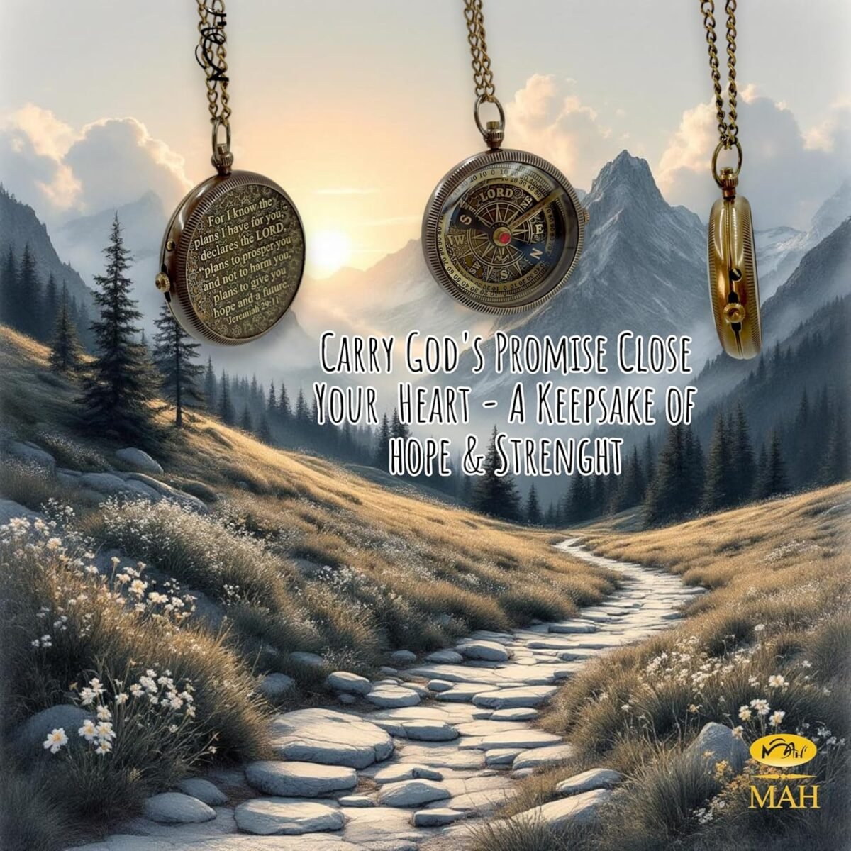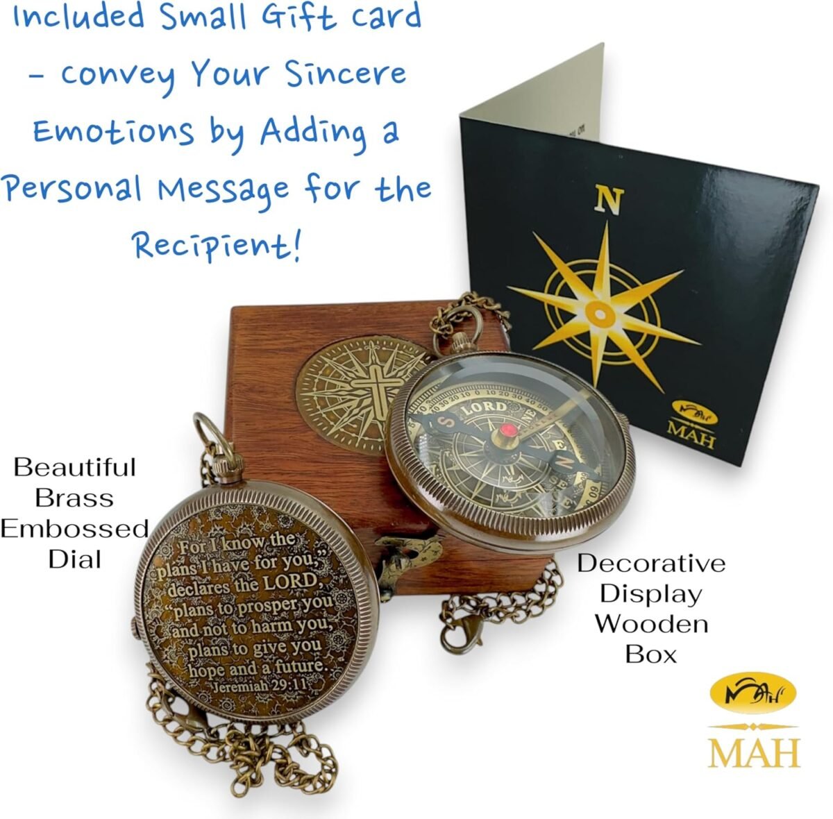 “For I know the plans I have for you,” declares the LORD, “plans to prosper you and not to harm you, plans to give you hope and a future.” – Jeremiah 29:11 This engraved brass compass is more than a navigational tool—it’s a symbol of faith, direction, and divine promise. The compass dial features “LORD” in place of North, serving as a powerful reminder that true guidance comes not from the world, but from God. Whether you’re honoring a graduation, baptism, confirmation, or personal milestone, this compass inspires the recipient to trust in the LORD’s purpose through every season of life. The embossed dial, antique brass finish, and pocket-sized design make it both meaningful and beautifully giftable. Packaged in your choice of a leather case or wooden box, it’s a timeless keepsake for Christian teens, adults, and anyone starting a new journey with faith at the center.