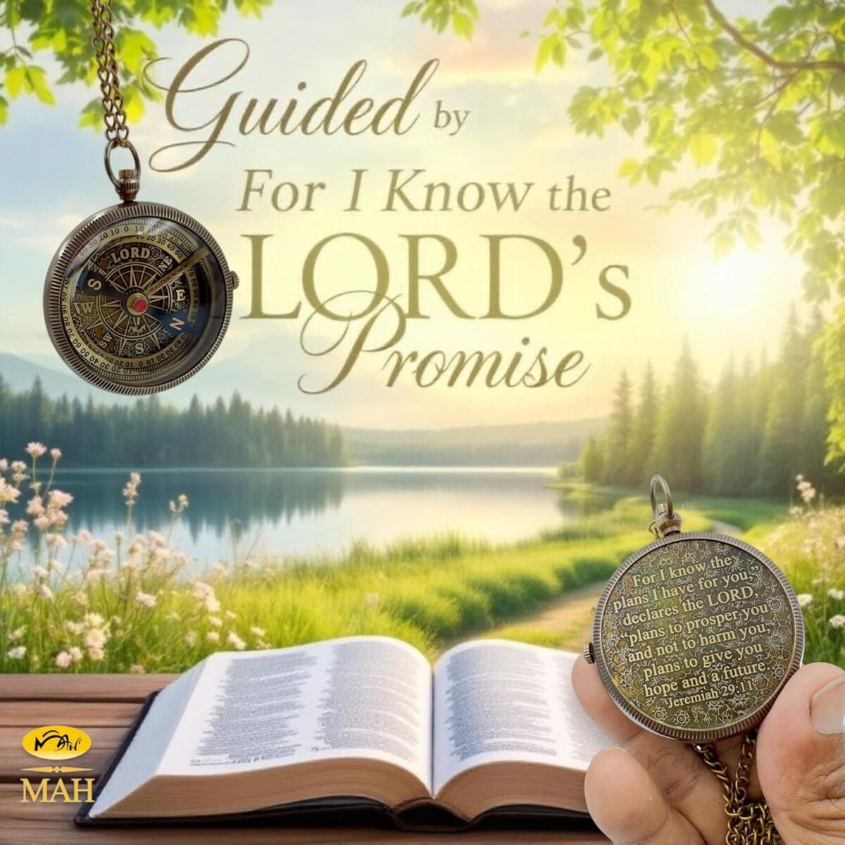 🌟 Guided by the LORD’s Promise – “For I know the plans I have for you…” This embossed dial compass replaces North with “LORD,” reminding us that true direction comes from divine purpose.