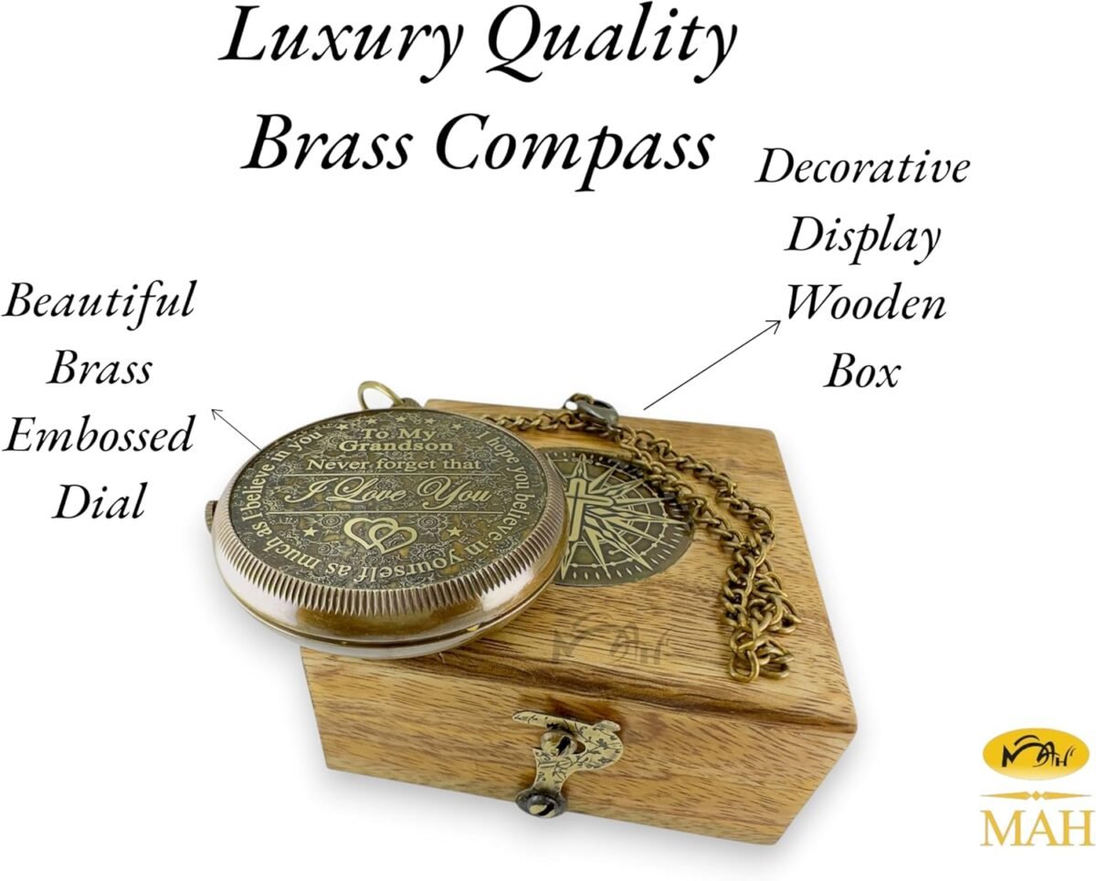 Available in a luxurious Case, this stylish motivational/inspirational compass for your grandson is ready to impress. High-standard craftsmanship in a vintage style design, for baptism, college graduation, confirmation gifts, Boy’s Room Décor, Back to School or missionary gifts for son.