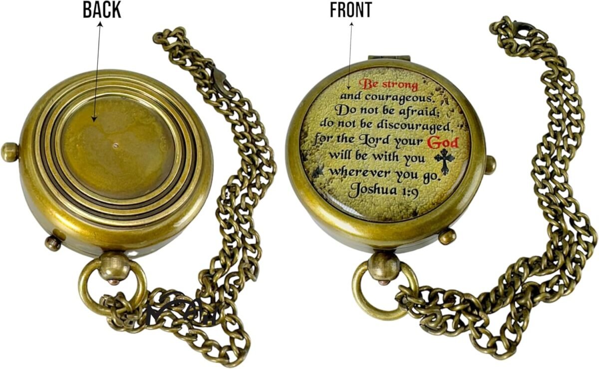 If you looking for inspirational gifts, which has a lot of meaning? and will last as a keepsake from a special occasion or milestone achievement? Like Graduation gifts, Baptism gifts, Art & collectibles gifts, Anniversary gift, gifts for Teen Boys, Birthday gifts, Christmas gifts, Personalized gifts, Decorative gifts, Astrolabe gifts, Confirmation gifts Ideas, finding your way gift, for his gFind direction through faith with this beautifully handcrafted Bible Verse Brass Compass – “Be Strong and Courageous” (Joshua 1:9). Thoughtfully created for those who walk by faith, this compass serves as a timeless reminder to trust God’s guidance in every step of life. The top lid displays the complete Joshua 1:9 verse along with a delicate cross and “GOD” symbol, sealed under a protective glossy layer that preserves its shine and meaning for years to come. Inside, a copper-engraved dial and smooth needle lock mechanism reflect expert artistry and precision, blending devotional symbolism with fine craftsmanship. Each compass is housed in a hand-engraved wooden keepsake box featuring the words “Be Strong & Courageous” on the lid and a brass plaque inside carrying the verse—symbolizing courage, direction, and divine strength. Complete with a solid brass chain, personal greeting card, and elegant brand packaging, it arrives ready to gift. Whether for a graduation, baptism, confirmation, or moment of encouragement, this faith compass stands as a heartfelt keepsake—uniting guidance, purpose, and the everlasting promise of God’s word.ift, Ideas corporate gift – You Just found it…!