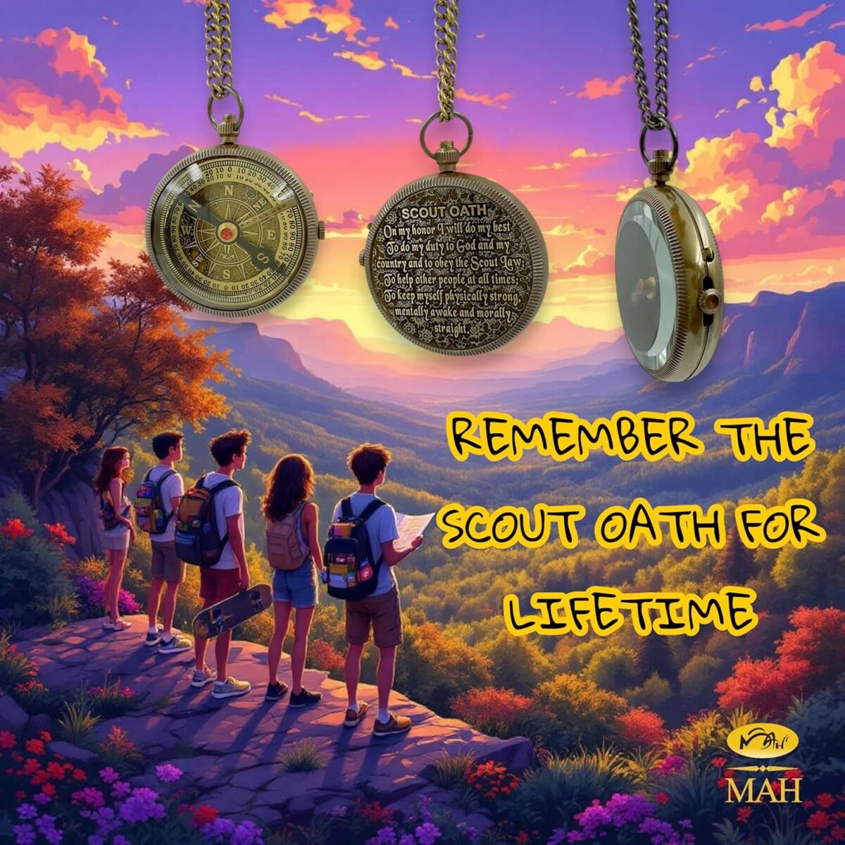 Scout Compass with Oath Message – Solid Brass Pocket Compass for Boys, Teens & Scouts | Inspirational Keepsake Gift for Eagle Ceremony, Graduation, Hiking, Camping, Outdoor Adventures, Promotion Gift