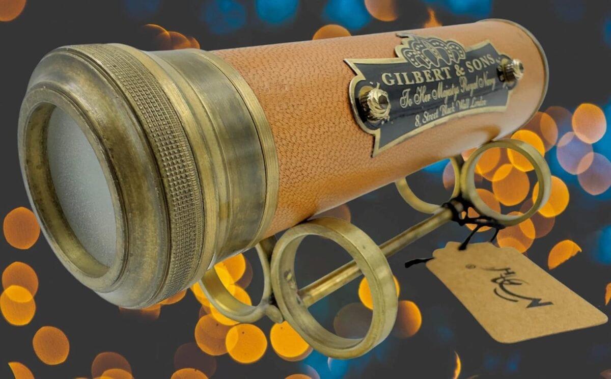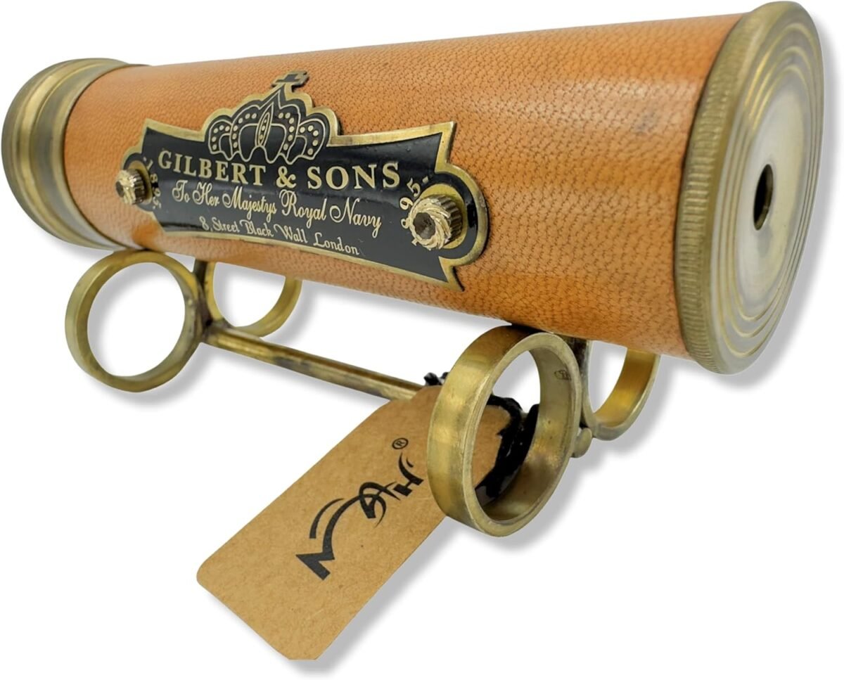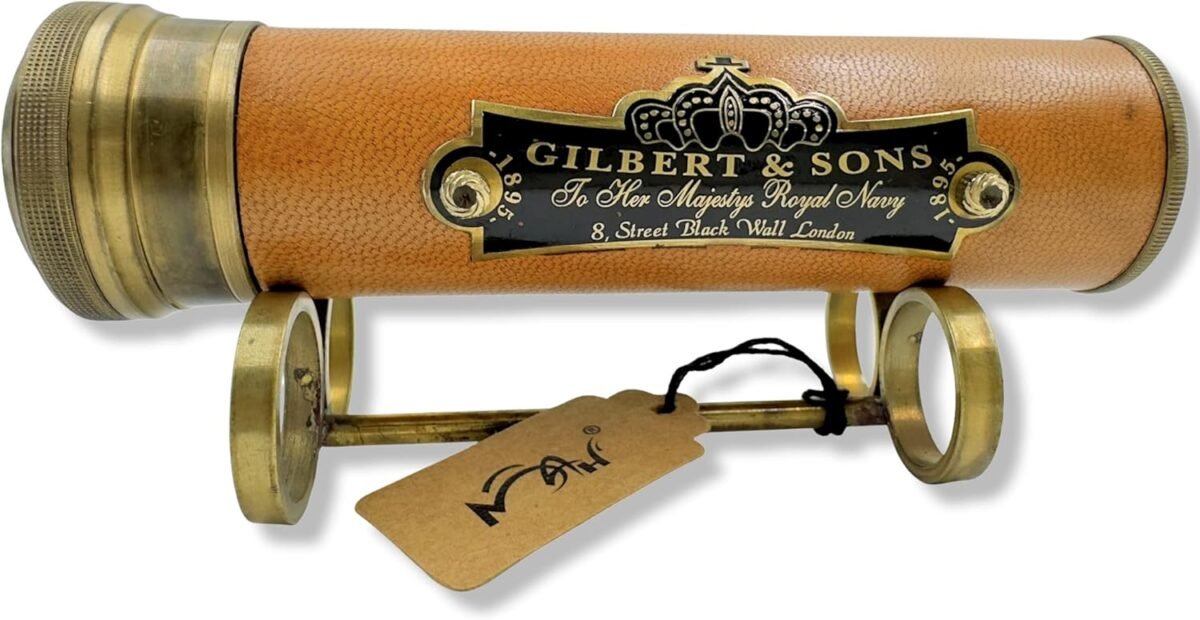 👑 Elegant Premium Design – Solid brass kaleidoscope wrapped in tan leather and accented with a Gilbert & Sons – London heritage nameplate. Inspired by classic 19th-century London craftsmanship, this collectible piece carries a timeless, royal charm.
