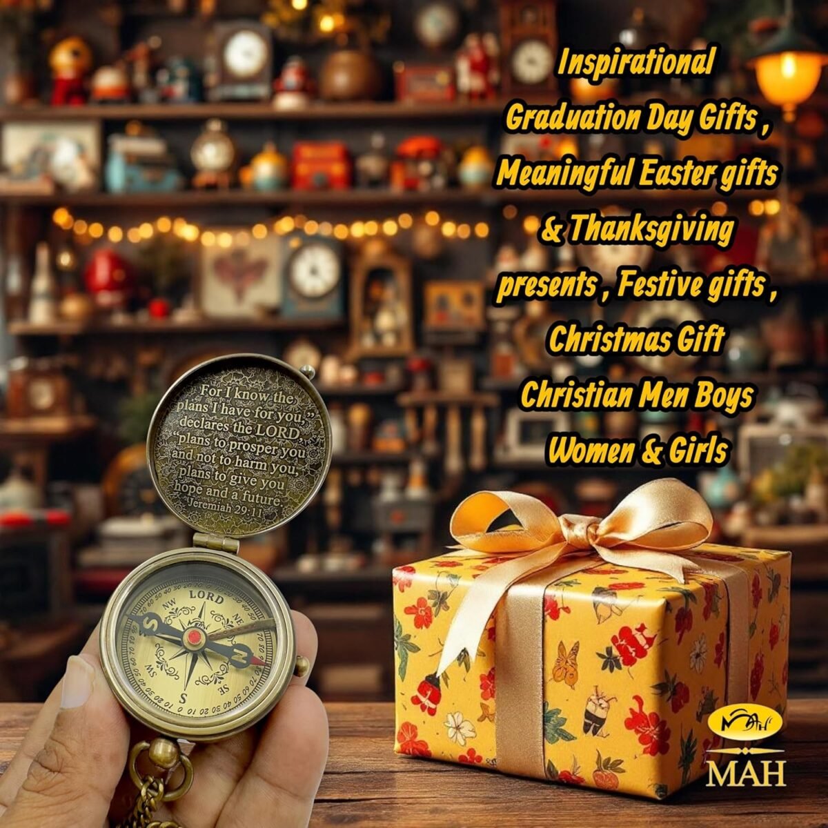 For I Know the Plans – Jeremiah 29:11 Brass Compass with Embossed Dial & “LORD” as North, Christian Gift for Graduation, Baptism, Confirmation, Pocket Keepsake for Boys, Girls, Adults, Religious gifts