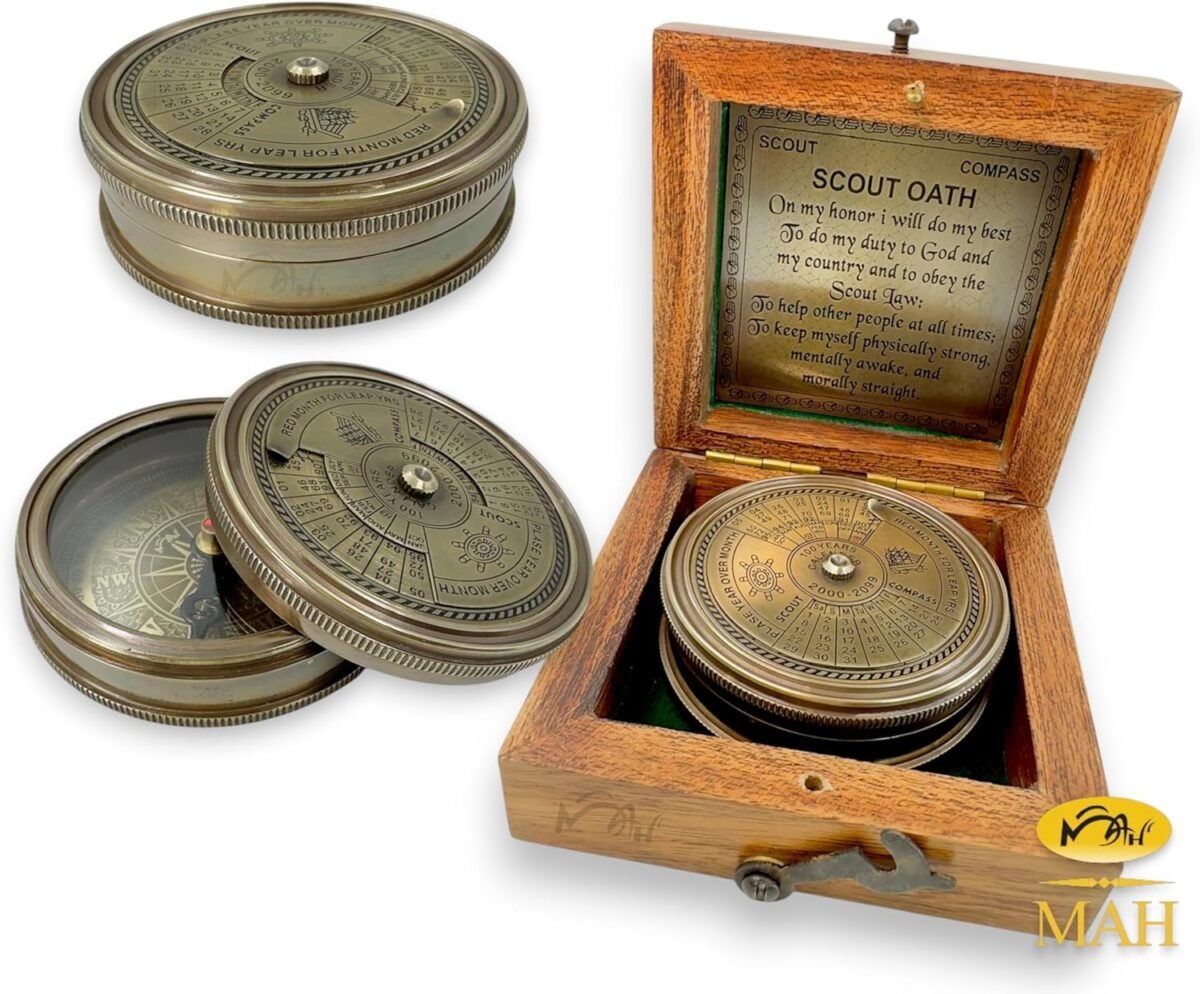 - 🧭 Scout Oath on Lid and Box – Dual Reminder of Duty – The full Scout Oath is embossed on the compass lid and engraved on a brass plaque inside the box—symbolizing honor, strength, and commitment.