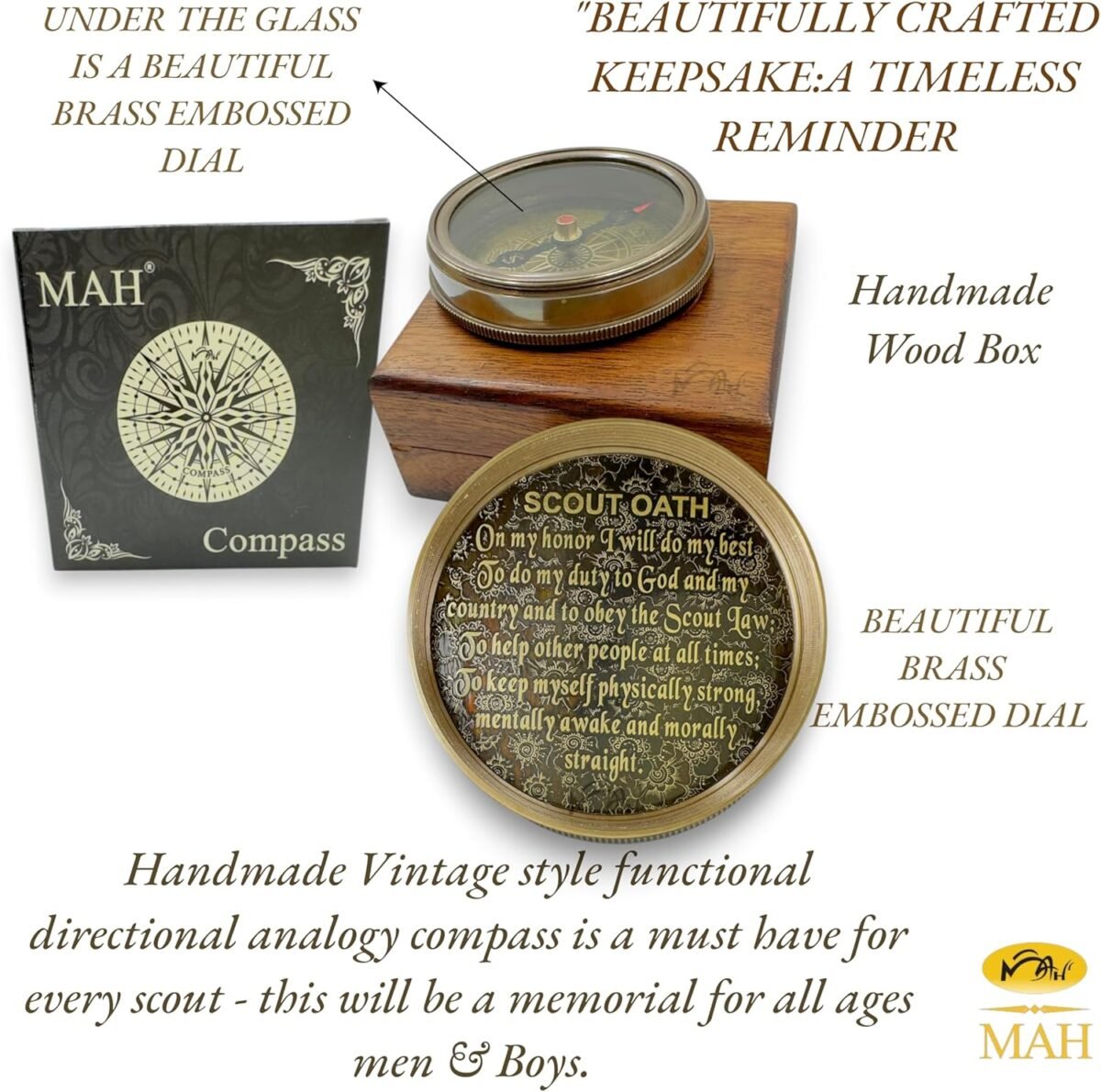 Scout Compass with Oath Message – Solid Brass Pocket Compass for Boys, Teens & Scouts | Inspirational Keepsake Gift for Eagle Ceremony, Graduation, Hiking, Camping, Outdoor Adventures, Promotion Gift