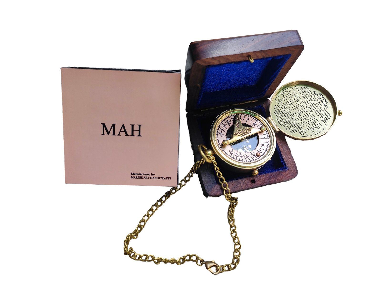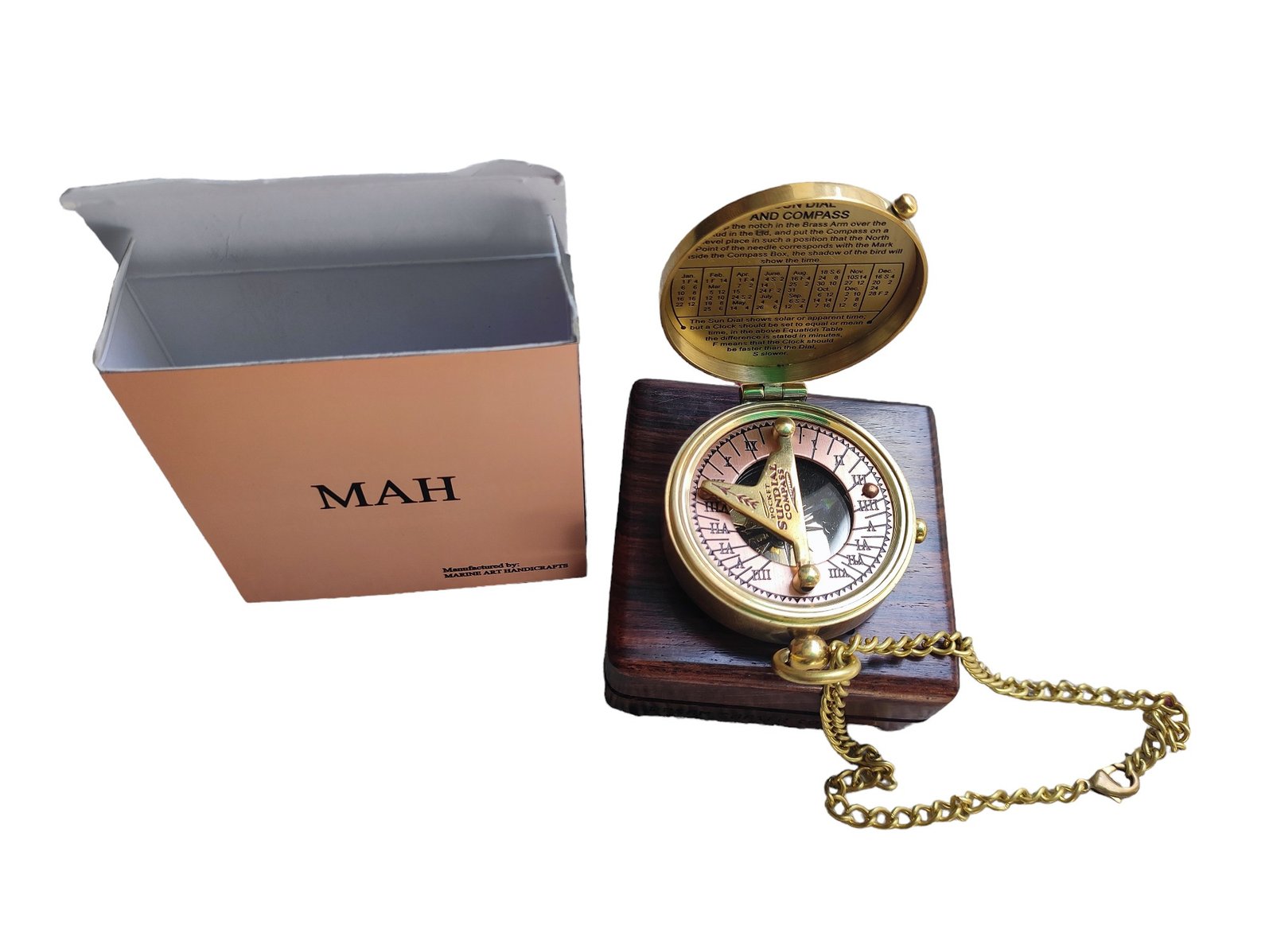 • PREMIUM QUALITY HANDMADE PRODUCT : Beautifully crafted solid brass pocket sundial compass with a rich, antique patina finish. The compass as well as the sundial are functional. It can be used for basic measurements & object of mathematical study. Transportable, handy design, easy to carry. A valued as decorative objects, literary metaphors.