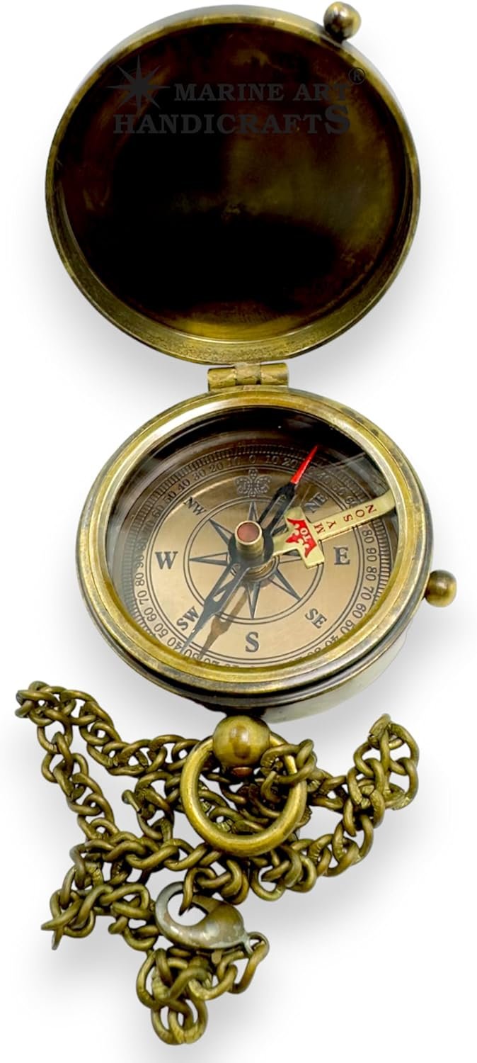 🧭 Timeless Craftsmanship – Expertly crafted from durable brass with a polished antique finish. The compass includes a smooth opening lid and a clear glass dial for a classic, elegant look.