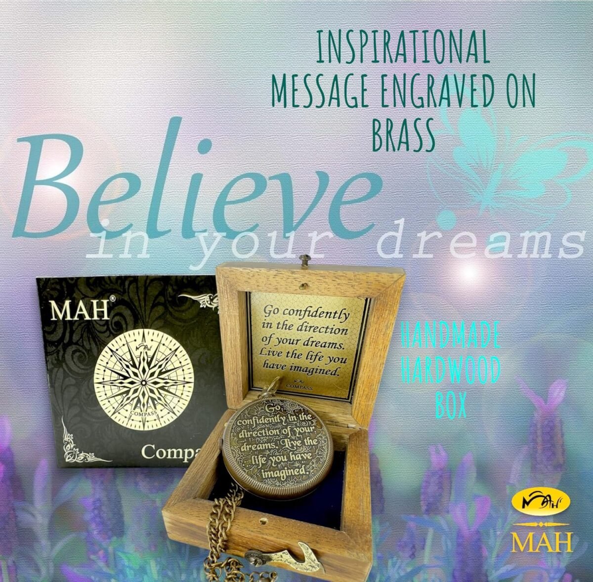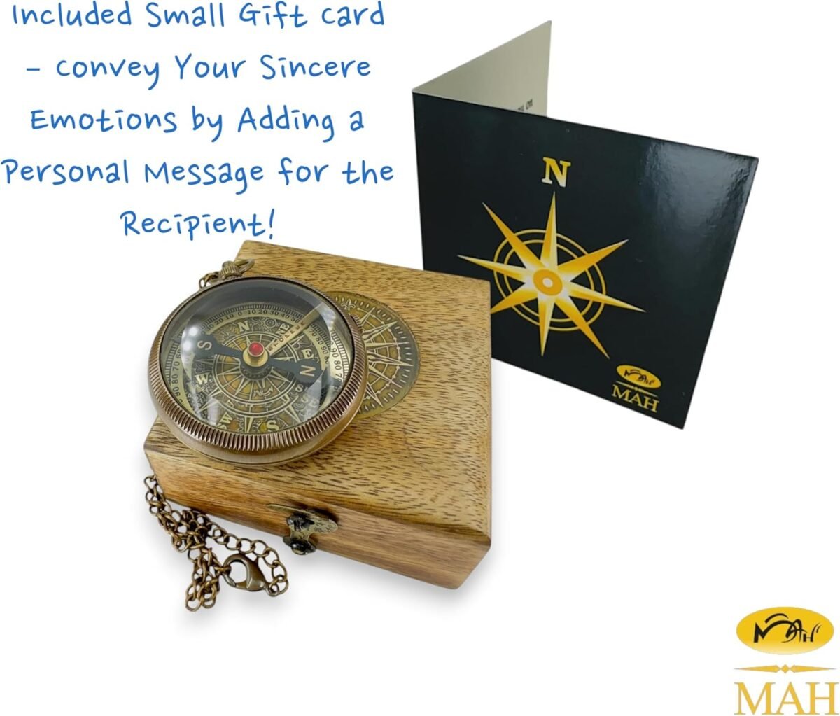 - 🧭 Handcrafted Brass Compass – Made by skilled artisans with solid brass, beveled glass dial, and engraved needle lock, combining beauty and functionality.