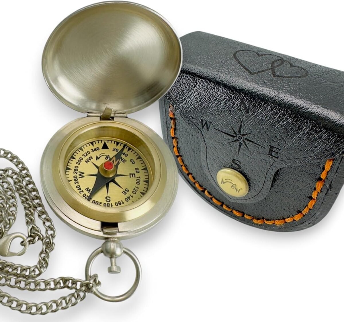 Backpacking Navigation Handmade Brass Personalize Compass for Best Man Get Well Hiking Camping Hunting Trekking Sailing Adventure Travelling Graduation Day Birthday Gifts for Son Back to School