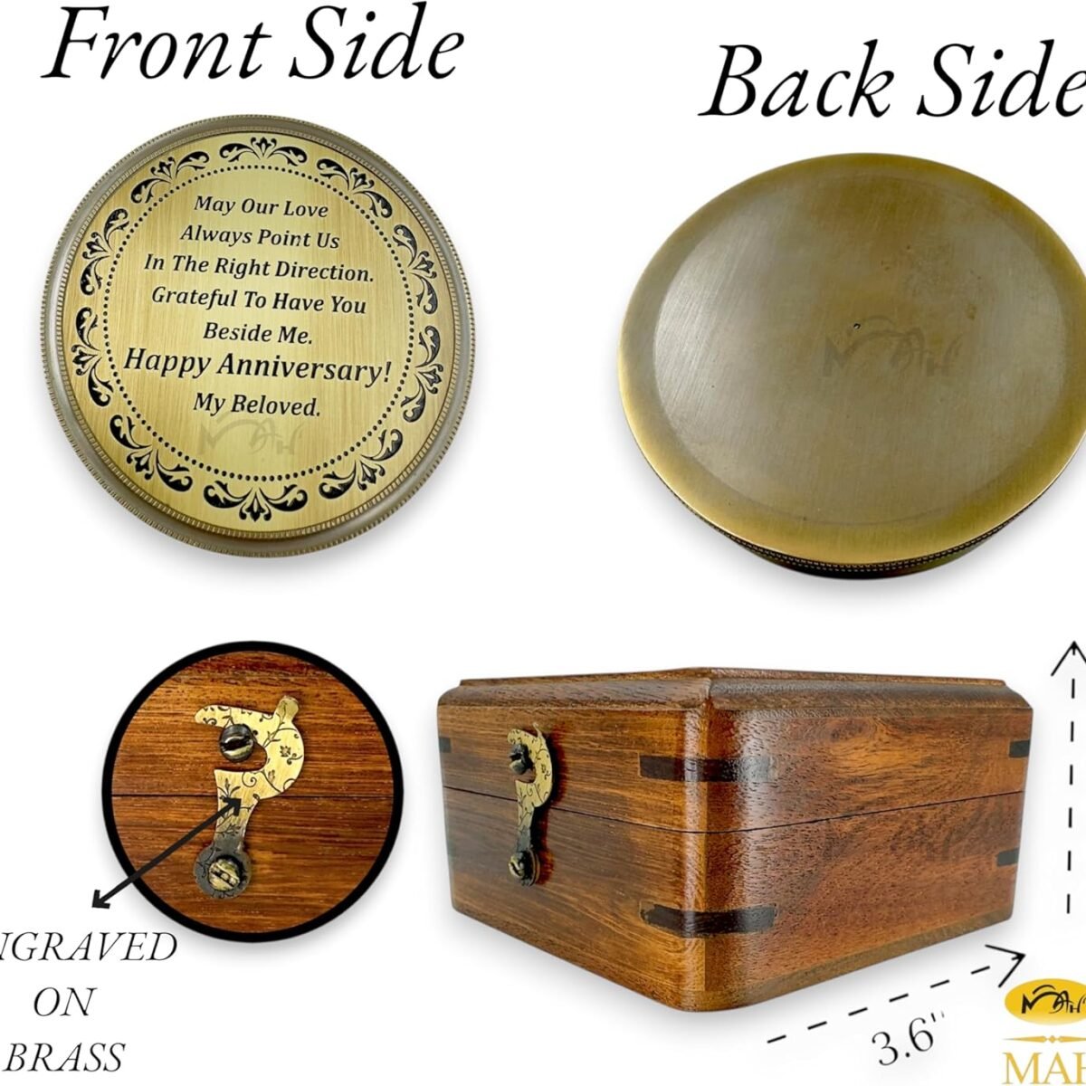 Anniversary Brass Sundial Compass Gift for Him or Her – Keepsake for Husband, Wife or Couple – 50th 40th 25th 20th 1st Year Wedding or Love Celebration – Engraved or Embossed Romantic Quote Compass