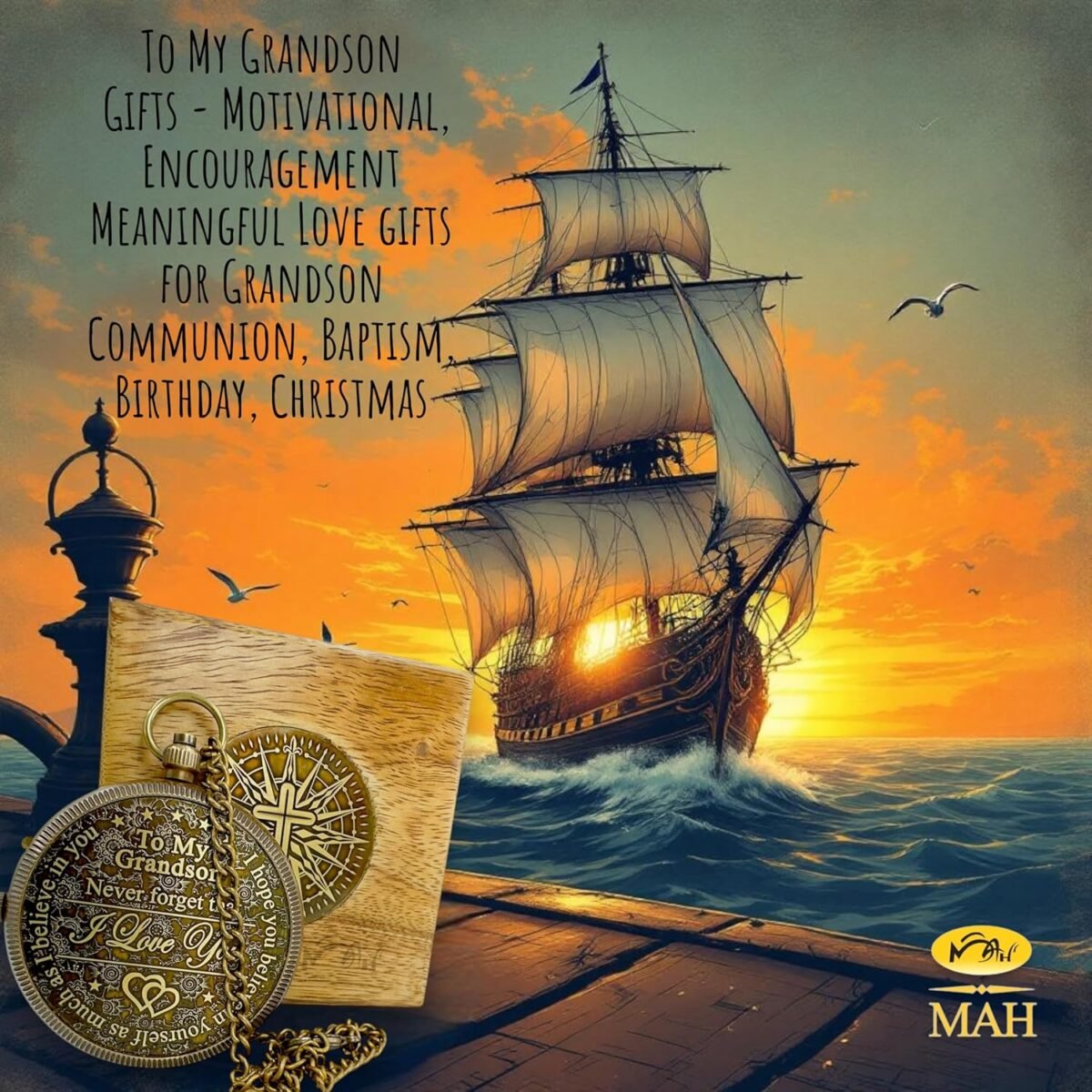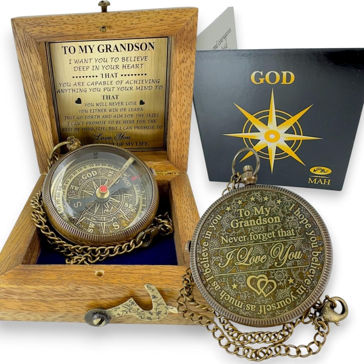 Gifts for Grandson Brass Handmade Compass Gift by Grandfather Gift Idea by Grandpa Grandma Memory Present to My Grandson Birthday Baptism Confirmation Love Christmas Tree Best Graduation Gifts