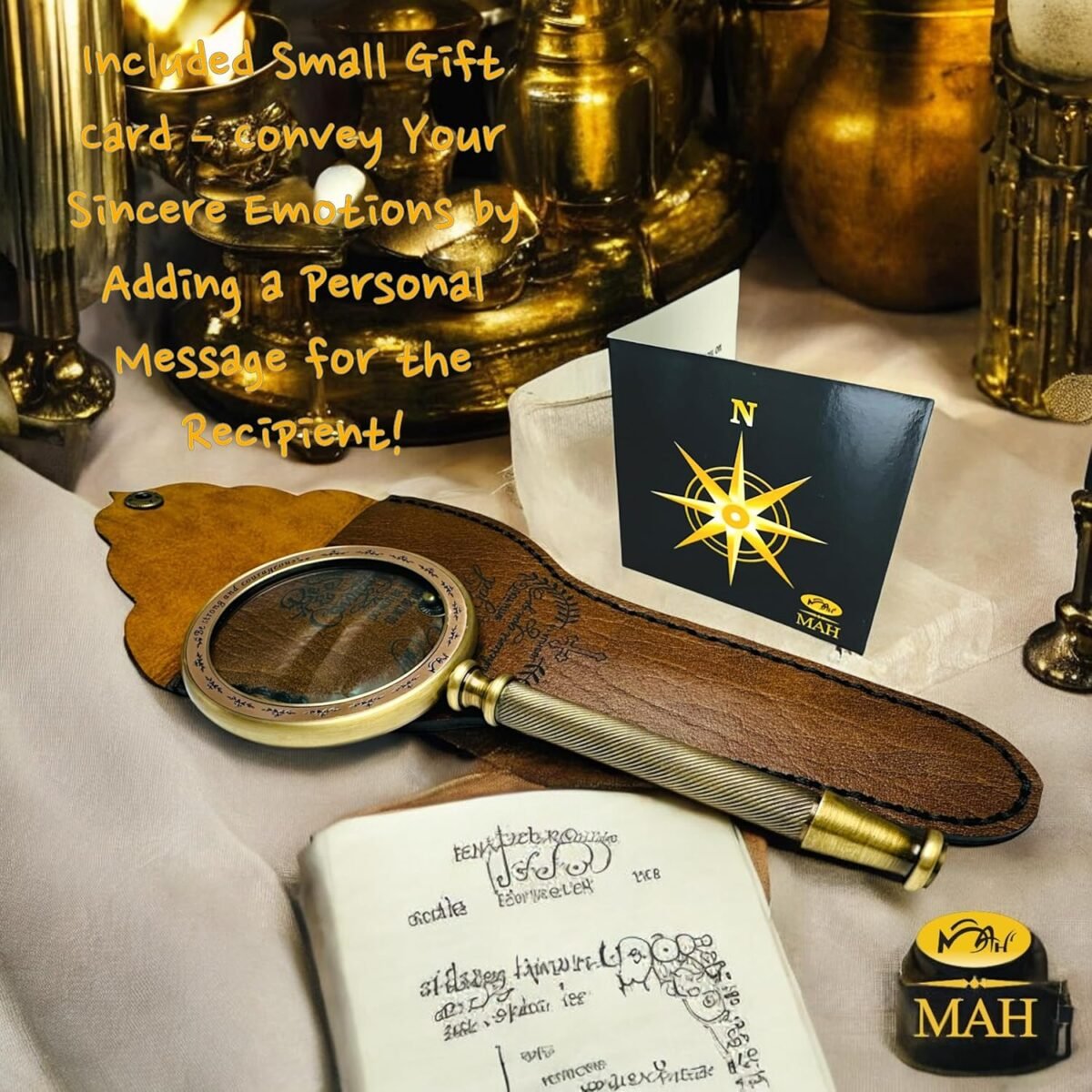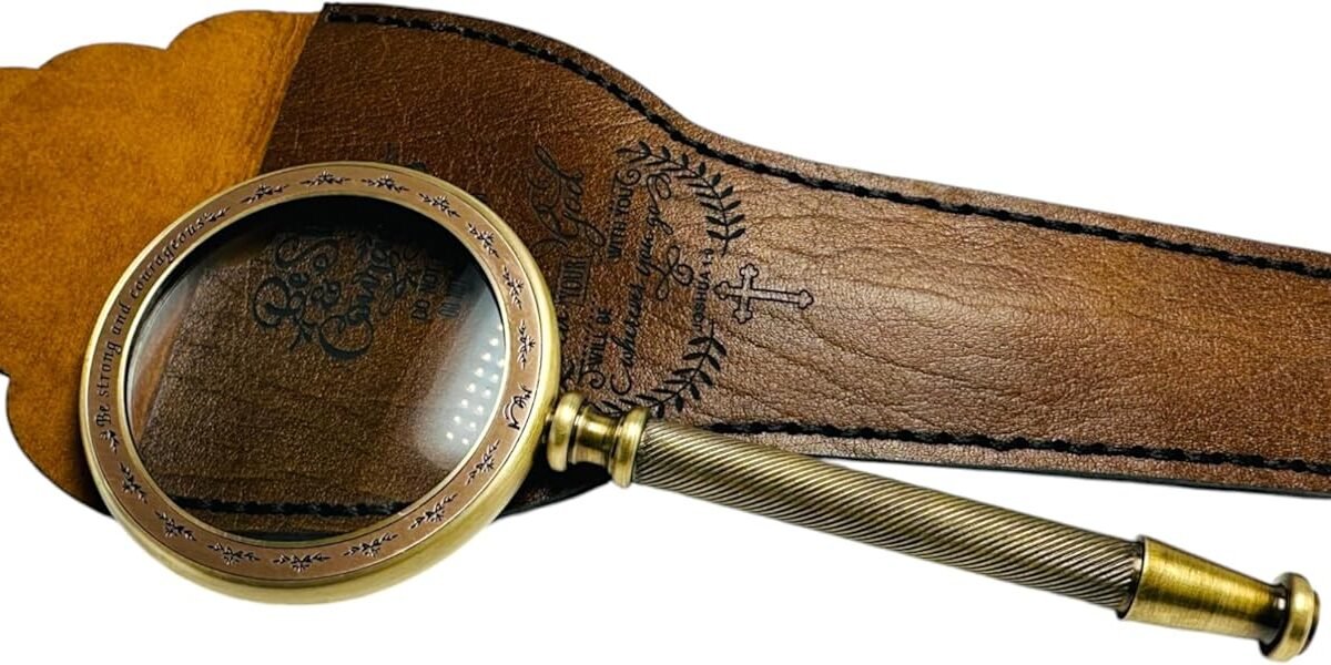 Handheld Brass Magnifying Glass with Finely Crafted Leather Case – Vintage Gift for Reading, Seniors, Bible Study, Inspirational Decor, Low Vision Aid, Anniversary or Faith Gift for Dad, Mom or Uncle