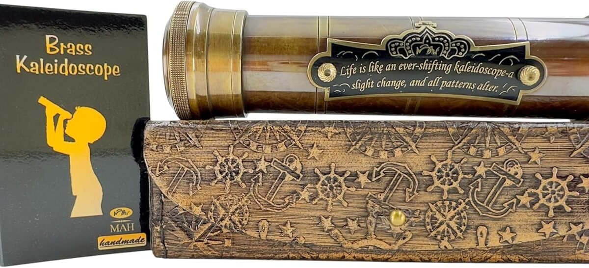 Handcrafted Brass Kaleidoscope – Vintage Nautical Collectible Gift for Teens & Adults – Sentimental Keepsake with Greeting Card – Educational Collectible & Home Décor Accent – Timeless Pattern Design