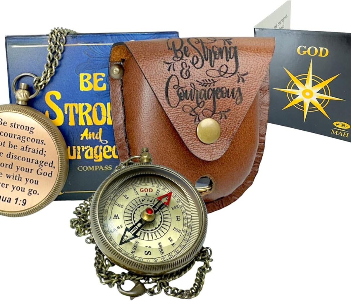 • Bible Verse Brass Compass – “Be Strong and Courageous” (Joshua 1:9) | Christian Gift for Graduation, Baptism, Confirmation – Religious Keepsake for Boys, Girls, Teens, Men, Pastors & Church Events