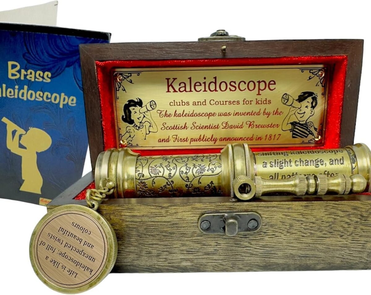 Handcrafted Brass Kaleidoscope – Vintage Nautical Collectible Gift for Kids, Teens & Adults – Sentimental Keepsake with Greeting Card – Educational Toy & Home Décor Accent – Timeless Pattern Design