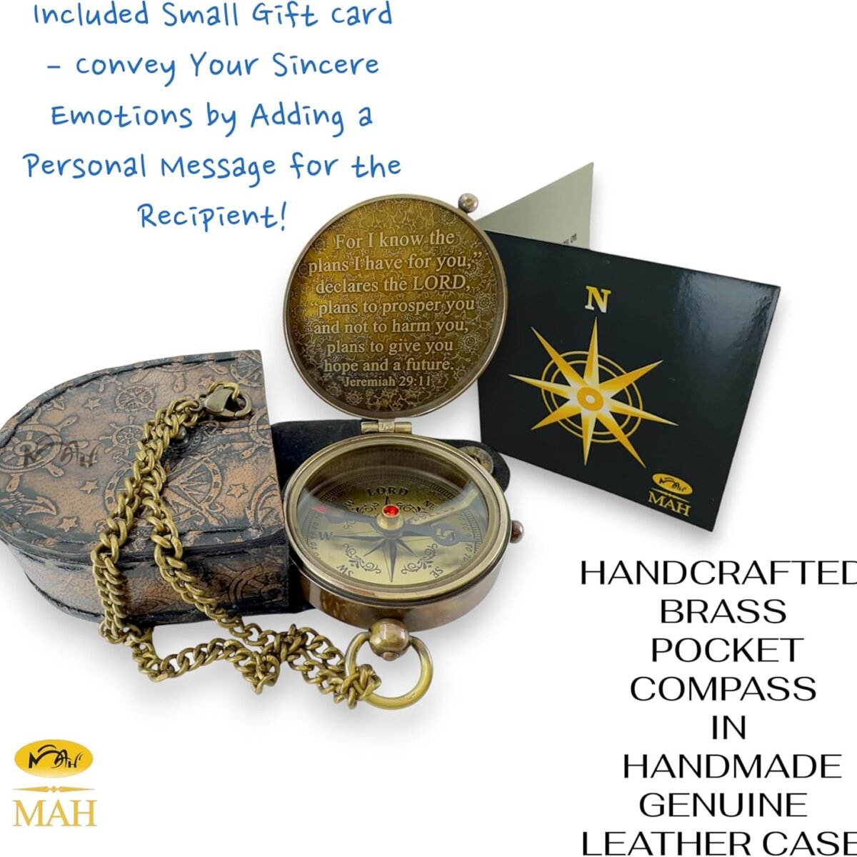 For I Know the Plans – Jeremiah 29:11 Brass Compass with Embossed Dial & “LORD” as North, Christian Gift for Graduation, Baptism, Confirmation, Pocket Keepsake for Boys, Girls, Adults, Religious gifts