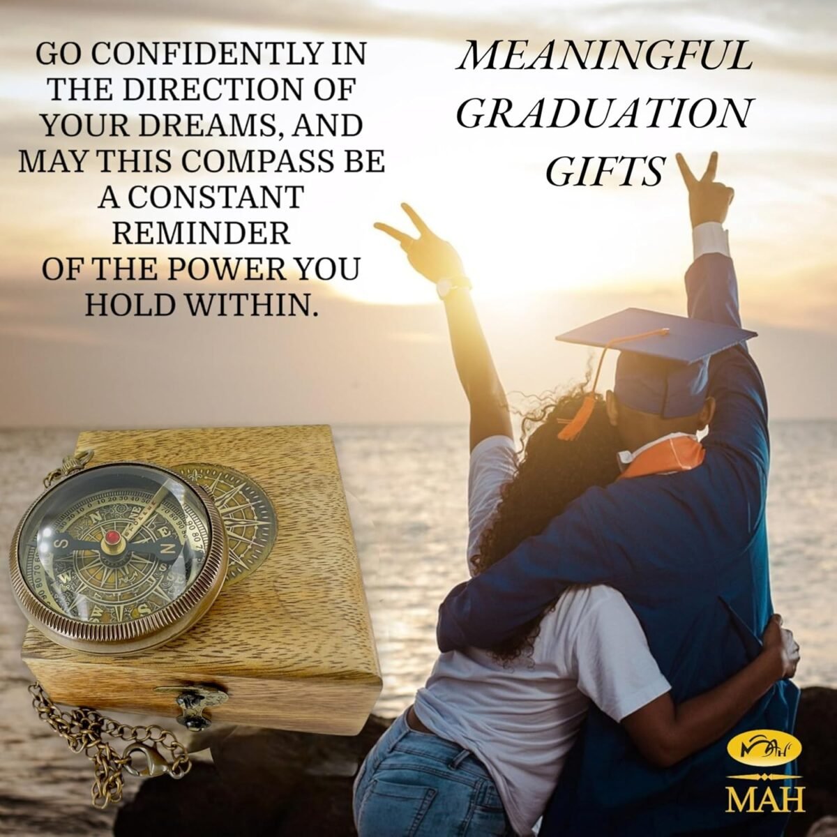 True North Compass – Go Confidently in the Direction of Your Dreams – Embossed Brass Compass – Graduation, Confirmation, Birthday, Motivational Gift for Him, Her, Students, Boys, Girls, High School